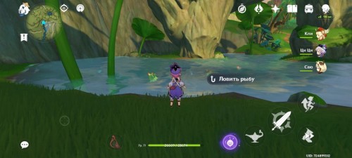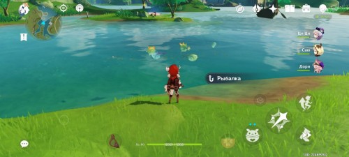 Переместитесь к телепорту в центре деревушки, а затем бегите на северо-запад к подвесному мосту. Здесь спрыгните с обрыва прямо к водоему, расположенному внизу. Встаньте на берегу, показанному на последнем скриншоте ниже, и начните рыбачить.
