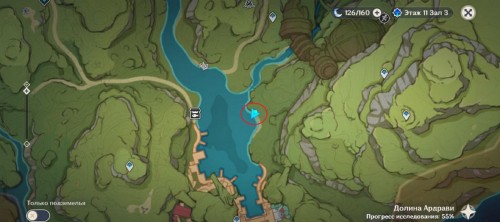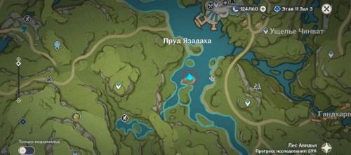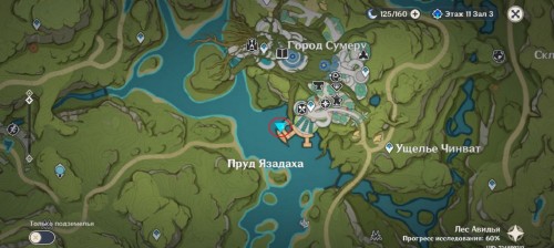 Переместитесь к Статуе Архонтов бегите к большому водоему на юге. Нужное место находится рядом с высокими растениями.