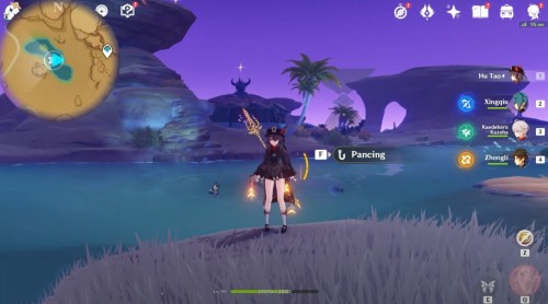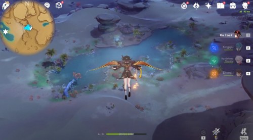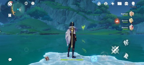 Переместитесь к телепорту к востоку от оазиса, а затем сразу же спрыгните с обрыва и летите вниз в западном направлении. Приземлитесь к показанному на скриншотах ниже берегу и начните рыбачить.