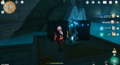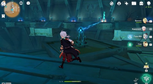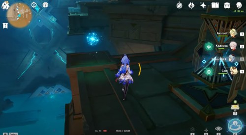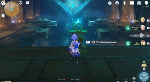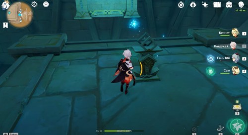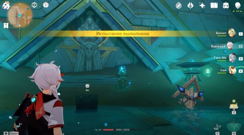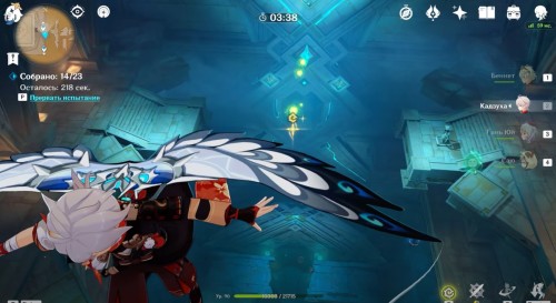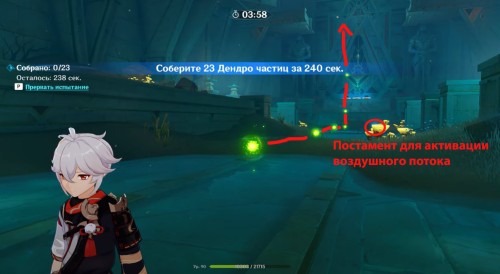Развернитесь от сундучков и бегите в противоположную сторону к конструкциям – разберитесь с ними для получения искрящейся детали (понадобится для другой загадки) и активируйте испытание по сбору Дендро частиц за ограниченный отрезок времени (4 минуты).