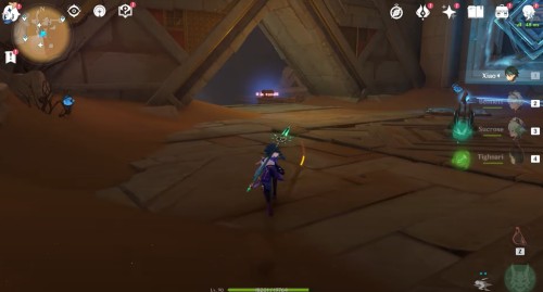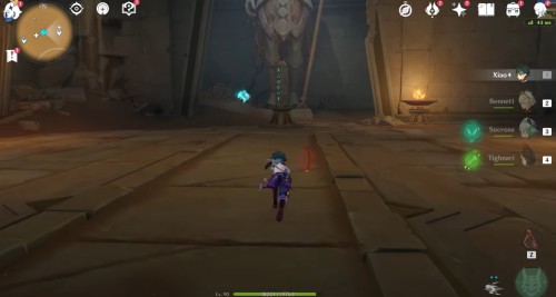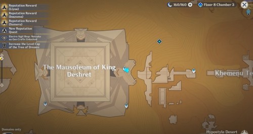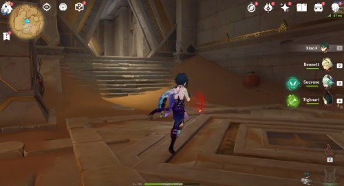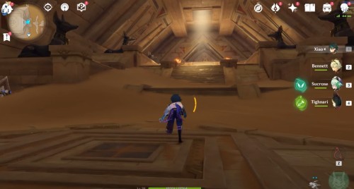 Переместитесь к телепорту к западу от храма Хемену и войдите в треугольный проход впереди. В помещении с двумя статуями шакалов сверните в левый проход. В новом зале сверните вправо и спрыгните в дыру.