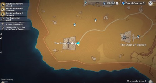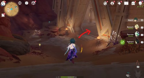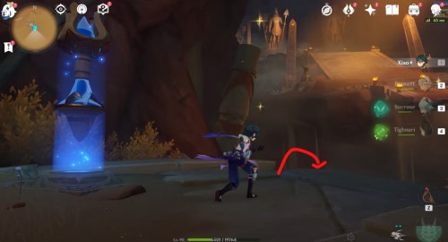 Тоже находится на поверхности, поэтому двигайтесь к указанному месту и взаимодействуйте с обелиском. Легче всего добраться досюда от подземелья «Сад бесконечных колонн» – телепортируйтесь к нему, а потом бегите на юго-восток и взберитесь на руины.