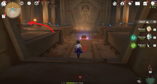 Открыв врата, пройдите внутрь и бегите вперед через тоннель, пока не окажитесь возле развилки. Сверните направо в треугольный проход. Вы попадете в сокровищницу пустынников, в центре которой будет стоять обелиск.