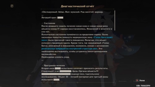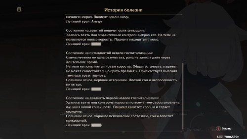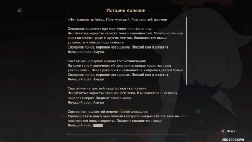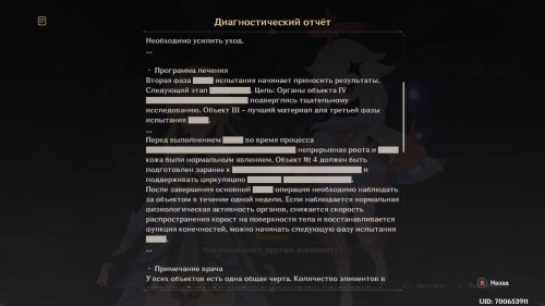 Начнется диалог с Паймон, во время которого вы среди прочих бумаг отроете медицинские записи.