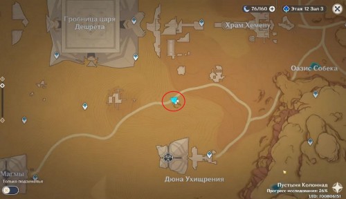 Следующее место находится у дороги между гробницей царя Дешрета и дюной Ухищрения.