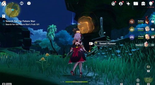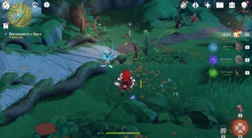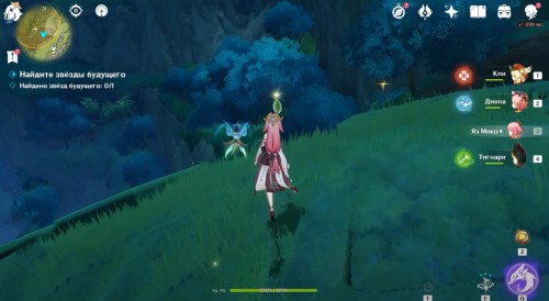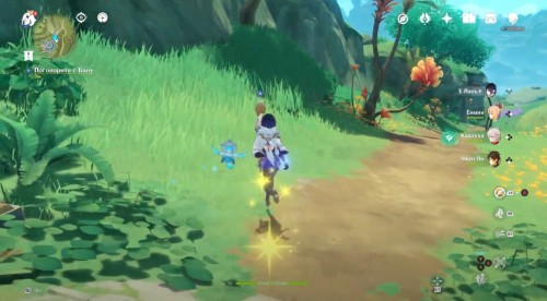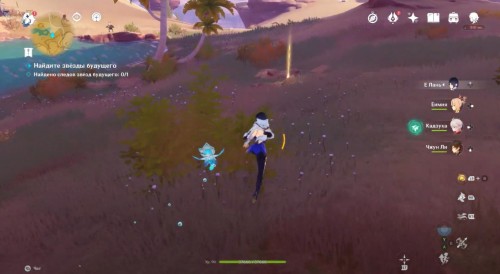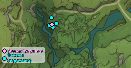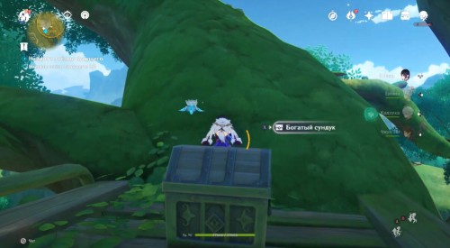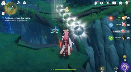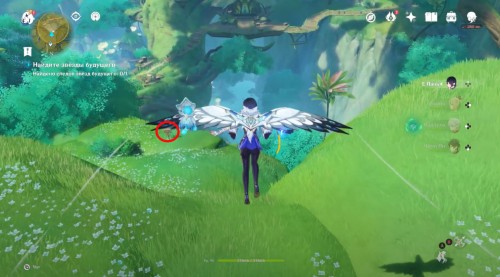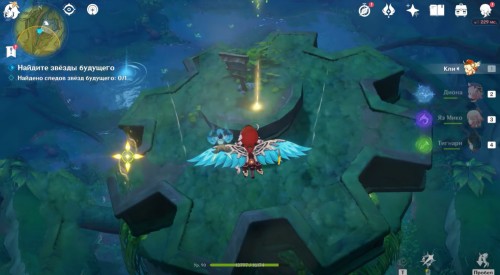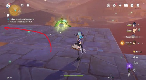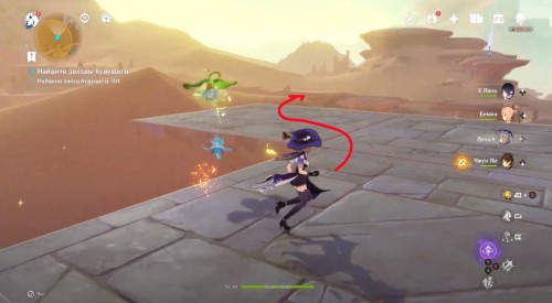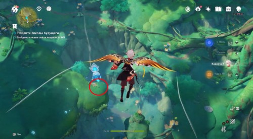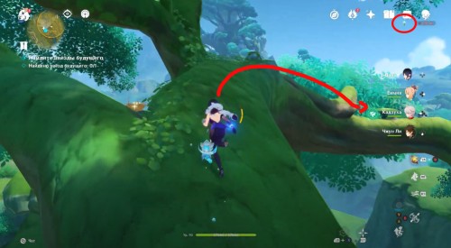 Итак, дождитесь, когда к вам подлетит семя трияны, а затем атакуйте его Электро и бегите вперед. Можете установить Мудрость Бану, чтобы примерно знать, где находится звезда, или просто посмотреть на карту выше. Дождитесь, пока к вам не подлетит, чтобы открыть дорогу, ведущую налево.