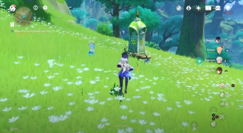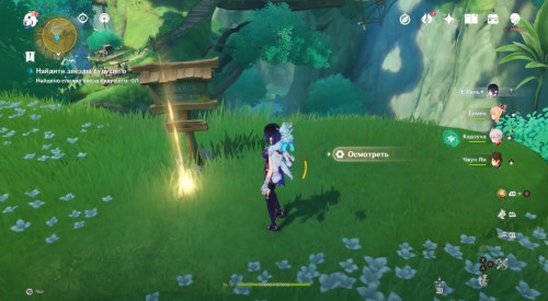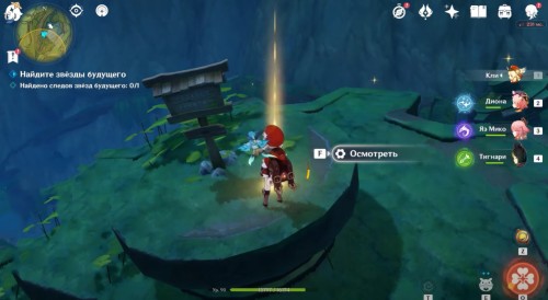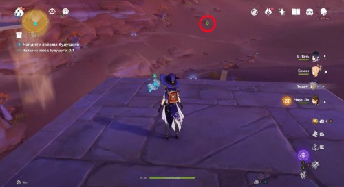 Инструмент будет указывать на восток. Воспользуйтесь четырехлистным символом и перелетите на уступ, на котором вы увидите круглую каменную плиту с квестовым маркером. Приблизьтесь к ней и прослушайте монолог Паймон. Далее вам нужно будет решить головоломку с факелами.
