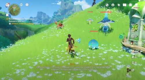 Приблизьтесь к огоньку и дождитесь комментария Паймон, после чего рядом с вами тут же возникнут первозданные конструкции. Разберитесь с тремя роботами для появления воздушного потока в данном районе.
