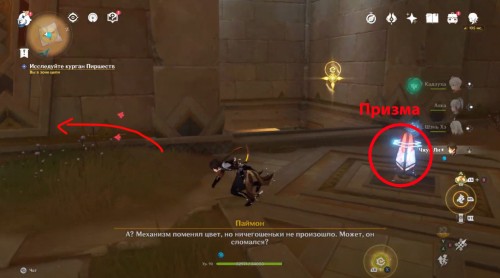 Возвратитесь назад на перепутье, схватив по пути первозданное светило. Коснитесь призмы, дабы окрасить ее в красный, и спрыгните в дыру позади нее. Внизу разберитесь с двумя конструкциями для удаления защиты с богатого сундука.