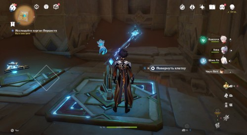 Коснитесь устройства, дабы удалить стену справа, за которой скрывается синий кристалл. Подождите, пока не возникнет второе светило на том же месте, а потом установите его на второй камень-репликатор для возникновения клетки вечного света. Поворачивать ее не нужно, так как она сразу выстрелит лучом в нужном направлении, что разблокирует обычный сундук.