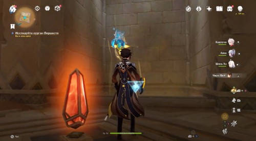 Войдя внутрь руин, вы окажитесь на перепутье. Взаимодействуйте с призмой иерофанта в центре, чтобы она стала синей. Затем поверните налево, пройдите в небольшую комнату, разберитесь с двумя плесенниками и соберите дендрокул.