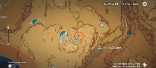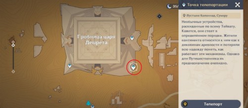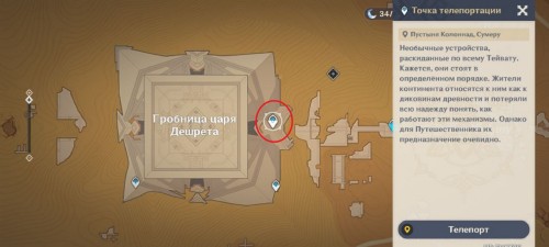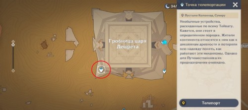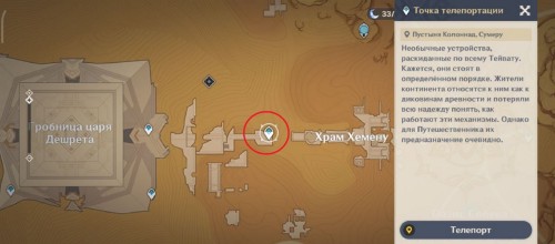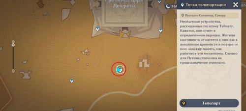 Эта ачивка на 5 примогемов из раздела «Сумеру: Позолоченная пустыня I» выдается за открытие всех телепортов пустыни Сумеру, доступных на момент обновления 3.1.