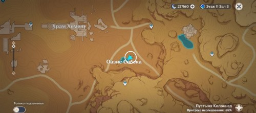 Подойдите к оазису Собека – рядом есть пара удобных телепортов. Здесь у водоема найдите дендрогранумы и с их помощью активируйте Дендро тотемы.
