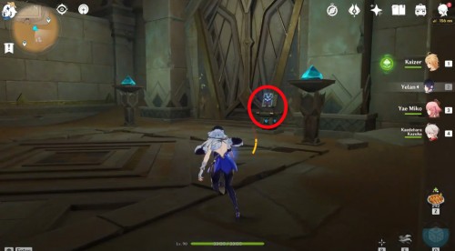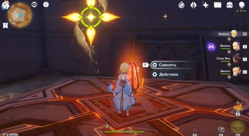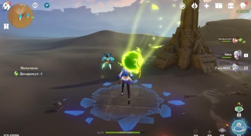 Его можно найти под водой в указанном зале. Чтобы опустить воду, необходимо решить небольшую головоломку со стихийными монументами. Далее вам нужно будет сопроводить две первозданные искры к факелам, пройдя испытание по сбору Дендро частиц. Подробнее об этом мы поведали в отдельной статье.