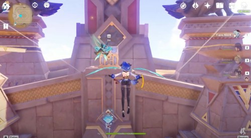 Переместитесь к указанному телепорту, а затем воспользуйтесь воздушным потоком и приземлитесь на невидимую платформу. Пройдите по дорожке, пока не доберетесь до сундучка. Мы подробно рассмотрели эту головоломку в отдельном руководстве.