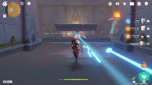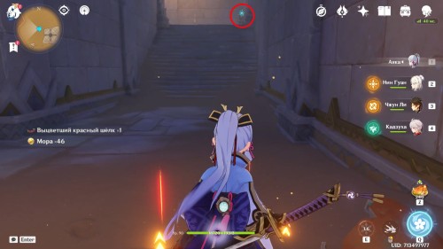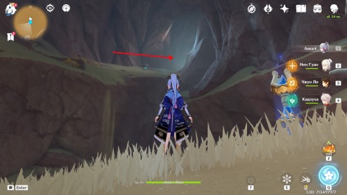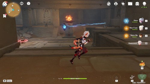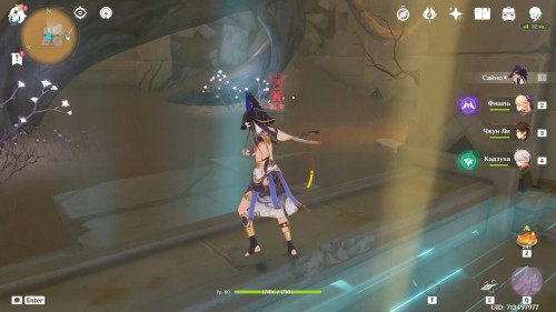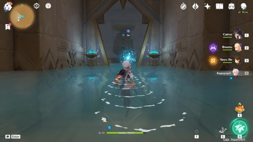 Спрыгните в дыру, расположенную за хиличурлом. Внизу вы увидите первозданную искру. Ее нужно провести по прямому маршруту до факела, чтобы уровень воды в зале снизился и открылся доступ к продолжению пещеры.