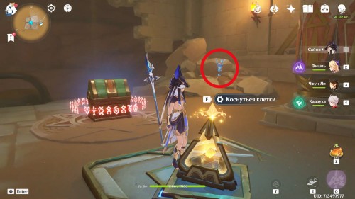 Клетки переместятся в нужное положение и разблокируют монументы. Быстро активируйте их Пиро элементом, пока механизмы не вернулись к исходному положению. Таким образом, вы разблокируете богатый сундук.