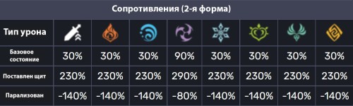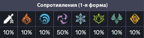 Даже в начальной форме Скарамучча имеет 50-процентную сопротивляемость к Электро урону, а во второй она и вовсе повышается до 90%, поэтому мы крайне не рекомендуем брать в отряд Электро героев. К остальным типам повреждений босс имеет одинаковую устойчивость, если не учитывать щит, возникающий во 2-й фазе и повышающий защиту ко всем стихиям на 200%.