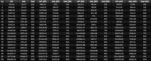 С полными характеристиками этого ложного божества (в двух формах) можно ознакомиться на изображениях ниже (2P, 3P и 4P показывают параметры при игре в совместном режиме).