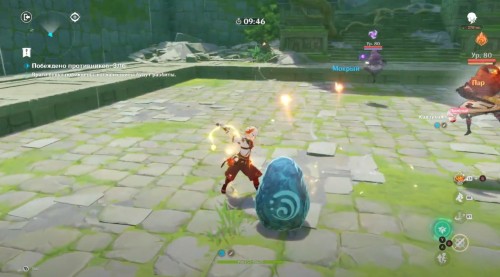 При сражении с небольшими группами врагов (до 3-х) просто чередуйте между собой элементальное умение Кэ Цин и обычные атаки Нахиды для вызова реакций. Если же на арене возникли крупные скопления противников (от 4-х и более), то воспользуйтесь взрывами стихий, чтобы ударить реакциями по всей толпе разом.