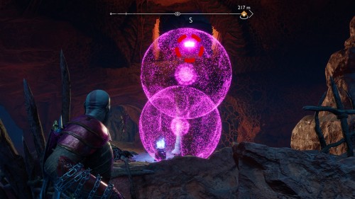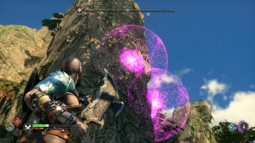 Третий можно найти на скалистом уступе, расположенным над сундуком норн. Поднимитесь на первый ближайший выступ, как если бы вы возвращались на Равнины, а потом поверните налево и взгляните наверх – вы должны будете увидеть жаровню. Используйте другую цепочку шестигранных пузырей, дабы добраться до нее.