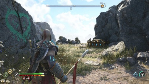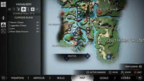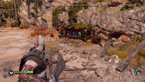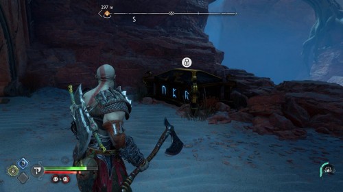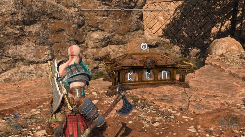 Взяться за его поиски можно будет только после прохождения миссии «Расплата». В нужную область вас может привести просьба «Беспокойство Фрейи». Когда поднимитесь на скалы, то выполните пару прыжков, чтобы пройти в заднюю часть локации – там вы и обнаружите сундук норн.