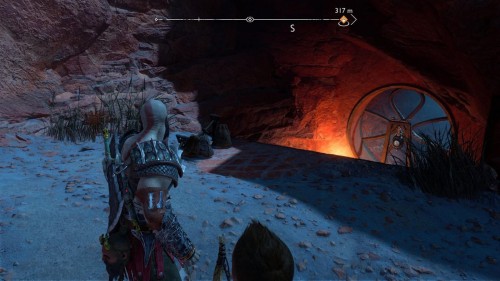 Для нахождения факела со знаком «С» спрыгните с уступа слева от сундучка и пройдите за угол – нужная вам жаровня расположена на вершине скалы, неподалеку от гроба. Однако для попадания к руне «N» вам придется разморозить воду, что приведет к погашению факела «С». Поэтому, если вы еще не активировали символ «N», то на обратном пути вам предстоит заново заморозить желоб, а уже потом зажечь жаровню «С».