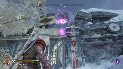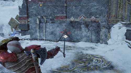 Что касается третьего, то он находится прямо справа от сундучка с рунами, однако путь к нему закрывает решетка. Поэтому чтобы добраться до него, вначале поднимитесь по ледяной стене позади сундука норн. Продолжайте взбираться наверх, но уже по цепи. Далее взаимодействуйте с большой цепью для разблокировки лестницы.