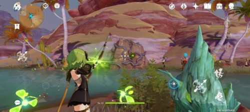 Найдите оазис к югу от входа в дюну. На островке в середине водоема возьмите дендрогранумы и разбейте 3 запечатанных камня. У дендрогранумов стоит первый Дендро монумент. Активировав его, отправляйтесь к остальным – вам нужно будет победить монстров рядом с ними.
