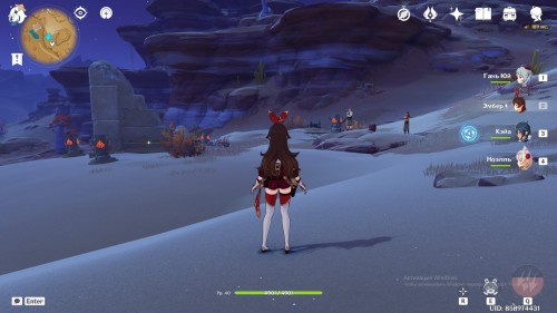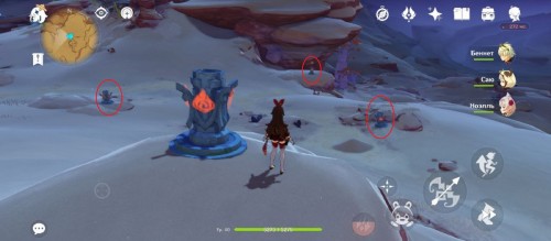От телепорта бегите в указанное место. Вам предстоит довольно быстро зажечь 4 Пиро тотема. Чтобы сделать это с первого раза, советуем взять в команду Эмбер, кинуть Зайчика у монумента на возвышенности, а затем выбежать вперед и зажечь луком остальные тотемы. Награда – обычный сундук.