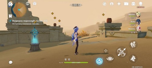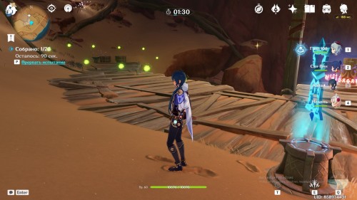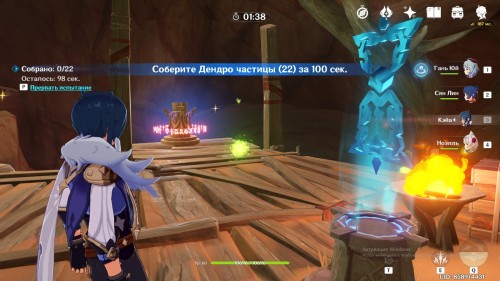 Второе испытание – собрать 20 Дендро частиц за минуту. Частицы следуют друг за другом, поэтому собрать их довольно легко.