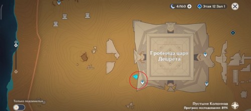 От входа в дюну бегите на юг, к другим руинам. Подробное их прохождение мы описали в отдельном гайде о достижении «Как писать отчет о раскопках». Ближе к концу подземелья вы встретите 4 Электро монумента. Их нужно активировать в порядке, на который указывает количество Первозданных конструкций рядом с каждым тотемом. Награда – богатый сундук.