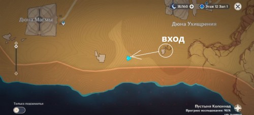 Подземелье находится на западе от дюны Пиршеств. Для того чтобы открыть его, придется решить головоломку с Пиро тотемами.