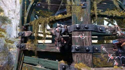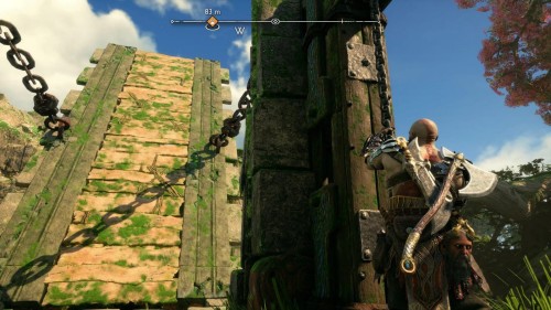 Вы сможете обнаружить его во время или после прохождения сюжетной миссии «Поиски Тюра». После получения фонарей от Синдри двигайтесь направо и отыщите желоб, по которому течет вода. Притяните его к себе с помощью клинков. В результате к вам подъедет большой подъемный кран.