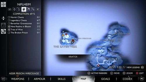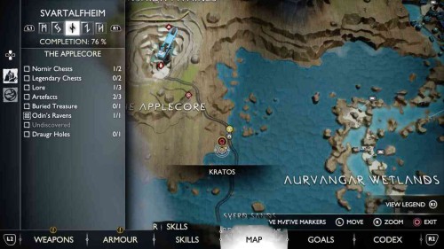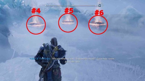 Сразу шесть золотых сундуков расположены прямо под Древом воронов. Для их открытия вам необходимо будет отыскать 6, 12, 18, 28, 38 и 48 воронов Одина соответственно.