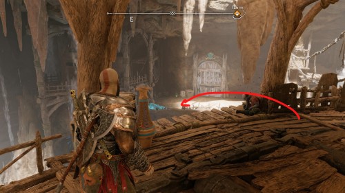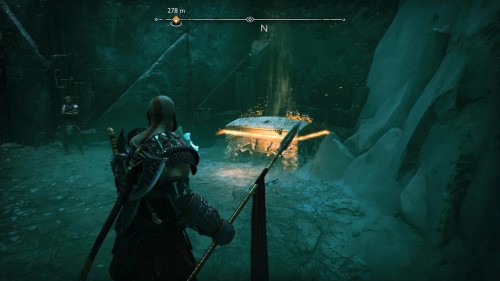 Вы сможете добыть его только при прохождении сюжетной миссии «Воссоединение», то есть возвратиться за ним позднее не выйдет. Открыв вторые врата, вам снова нужно будет преодолеть пропасть, воспользовавшись своим копьем. Бросьте его в стену, отыскав нужный угол, а потом двигайтесь дальше. Золотой сундук расположен прямо на главном пути.