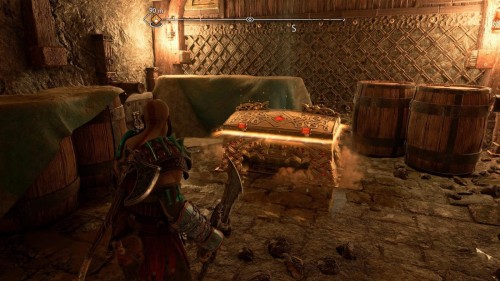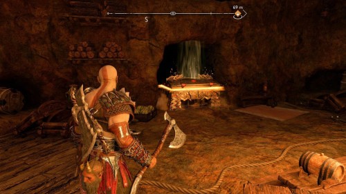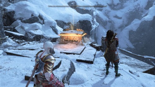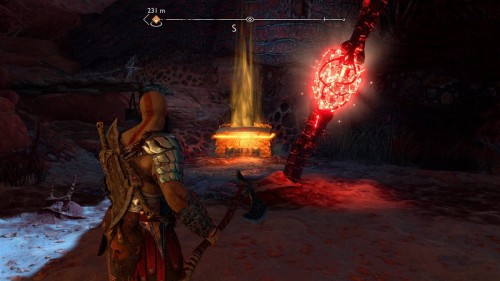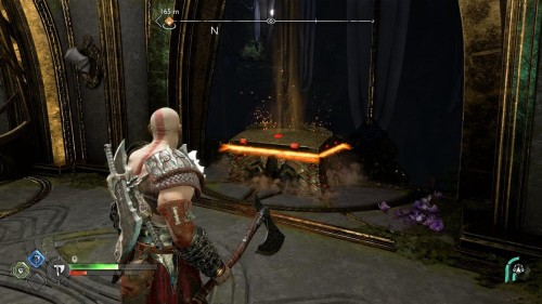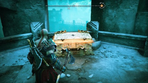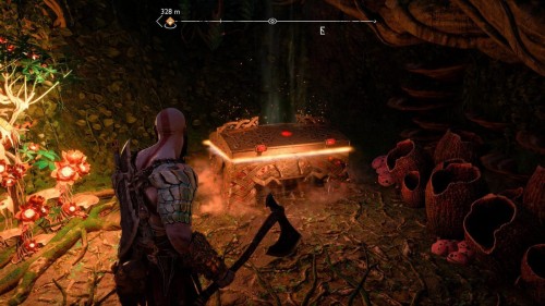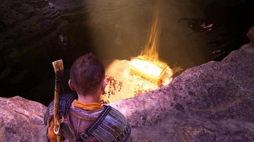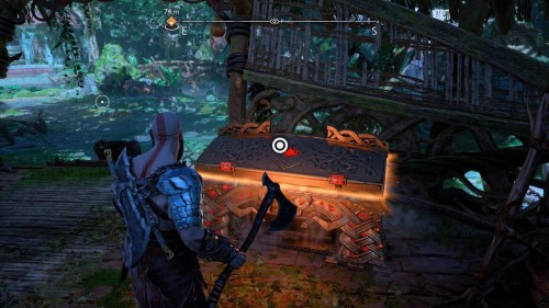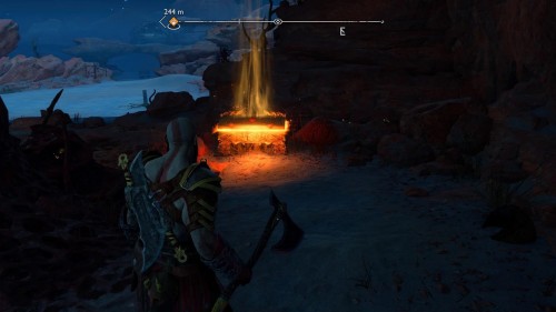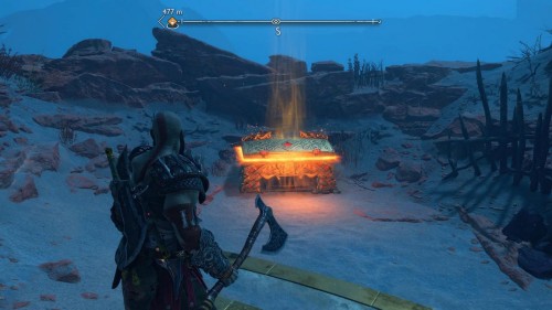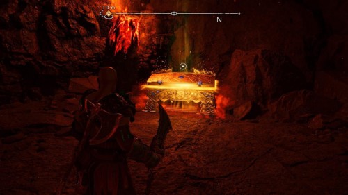 Вы сможете добыть его только во время прохождения сюжетной миссии «В огонь», то есть прийти за ним позднее не выйдет. Возвратитесь из Муспельхейма с Тором, просмотрите кат-сцену, а затем двигайтесь в конец вышеуказанной локации. Вы обнаружите золотой сундучок с правой стороны от лесенки.