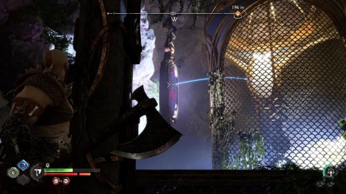 Далее взберитесь наверх по стене позади сундука с рунами, а потом вскарабкайтесь еще выше с помощью цепи. Вы заметите гигантскую цепь – взаимодействуйте с ней, разблокировав лесенку, ведущую вниз к золотому сундуку справа.
