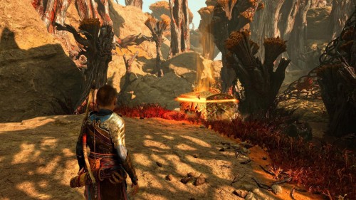 Вы сможете обнаружить его во время или после прохождения сюжетной миссии «Секрет Гроа». Дойдя до Мистических врат, двигайтесь вперед по основной дороге. Вскоре вы доберетесь до пещеры с сумеречными камнями (фиолетовые). Выбравшись из нее, спуститесь вниз и налево. Золотой сундучок стоит позади нескольких сосудов.