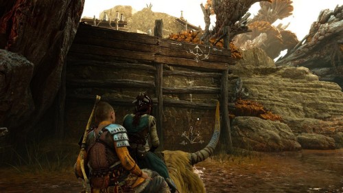 Вы сможете добыть его во время или после прохождения сюжетной миссии «Слово судьбы». Отправляйтесь на северо-восток от храма Тюра и найдите там обломки из дерева. Пересеките их, чтобы попасть на Берег Девяти. Далее пролезьте под огромным валуном и двигайтесь к обломкам изваяния впереди. С правой стороны можно найти лианы, уничтожение которых откроет вам доступ в локацию Гребцы.