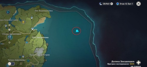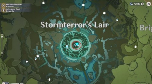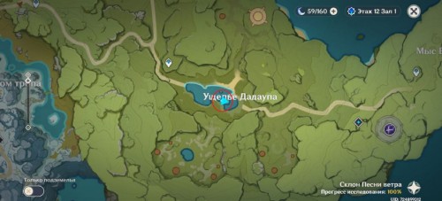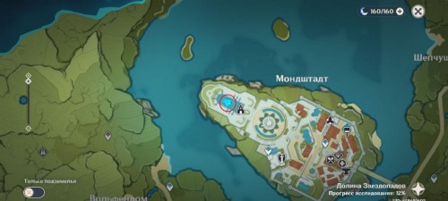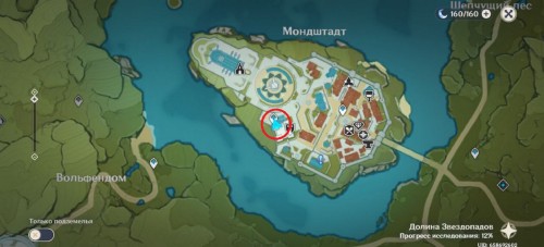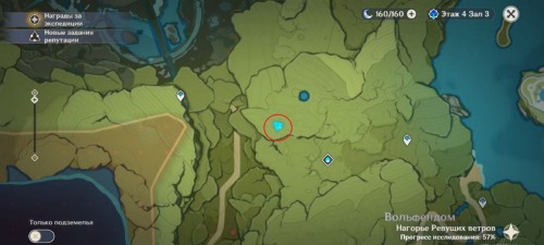 От подземелья «Сад Сесилии» бегите на северо-запад. Победите Глаз бури, чтобы убрать Анемо барьер и открыть сундук.