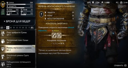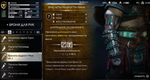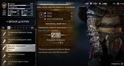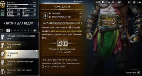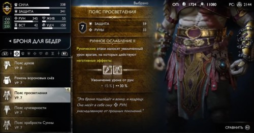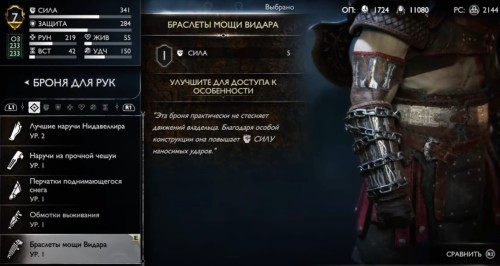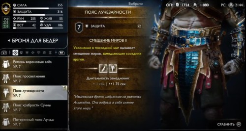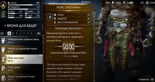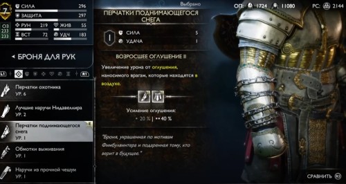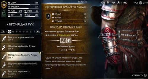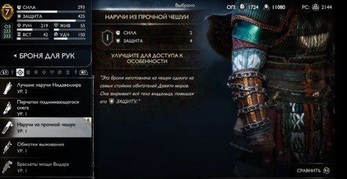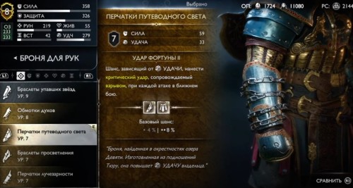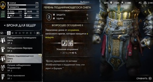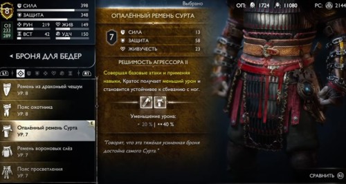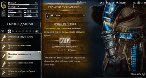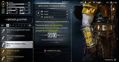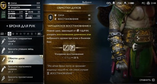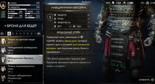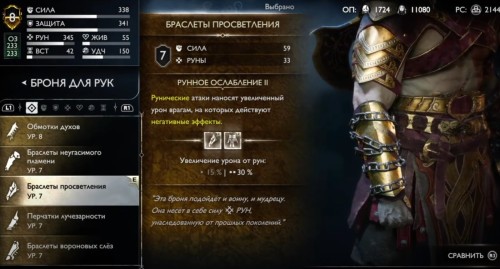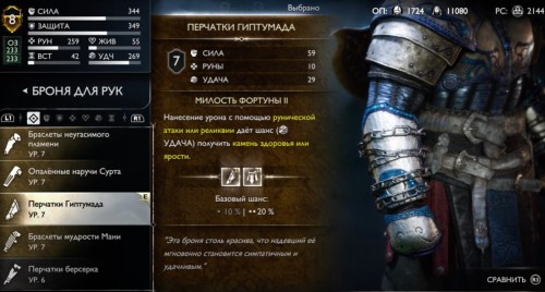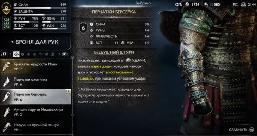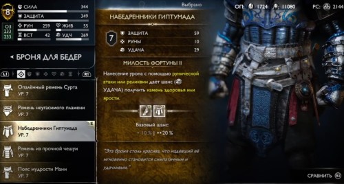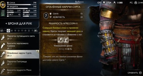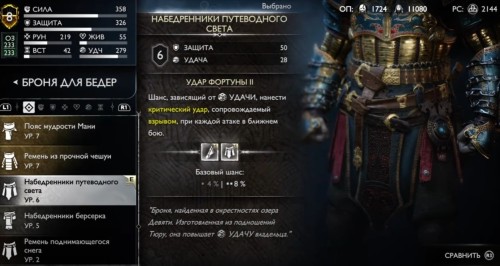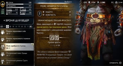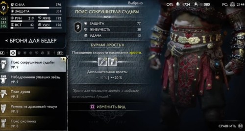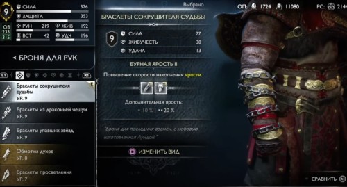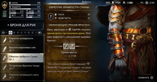- Бонусы брони для рук и бедер: С определенной вероятностью (зависит от Удачи) Кратос получает прилив ярости после получения повреждений. Чем меньше очков жизни у героя, тем выше эта вероятность.