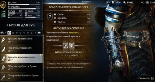 Мы рекомендуем вам совместить браслеты и ремень Вороновых слез, чтобы повысить эффективность лечения на 30%, с лучшим нагрудником Нидавеллира, который повысит Живучесть, что крайне важно в первой половине кампании. Кроме того, на ранних этапах вы довольно часто будете осуществлять захват оглушенного врага (R3).