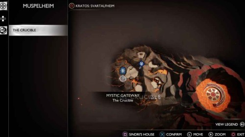 Получив на руки обе половины семени Муспельхейма, вы сможете в любой момент отправиться в локацию Горнило. Для этого вам необходимо просто взаимодействовать с любыми ближайшими Мистическими вратами и открыть соответствующую область.