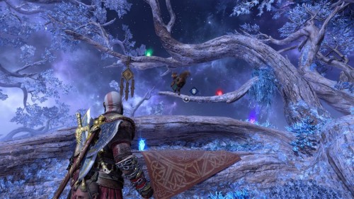 Для этого после выполнения сюжетного квеста «Битва миров» отправляйтесь в дом Синдри и поболтайте там с белкой по имени Рататоск. Если его нет на нижней ветке, то бросьте топор в колокольчик, чтобы призвать зверюшку. Он передаст вам сразу несколько семян Иггдрасиля, которых хватит для активации все оставшихся Мистических врат в игре.