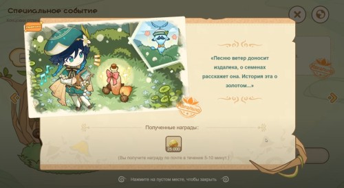 Полностью открыв все арты, не забудьте перейти в Альбом события, чтобы забрать 10 тысяч моры в качестве дополнительной награды. Если у вас остались монетки, то можете потратить их на покупку декоративных предметов.