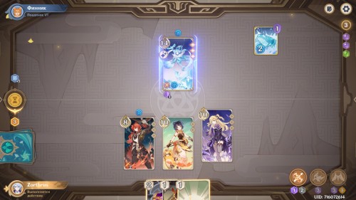Составляя колоду, обратите внимание на наличие лечащих карт, карт энергии и уничтожения помощников. Будьте осторожны с картой «Клятва стража»: она отлично сработает, если на поле есть два помощника магу кэнки, но, если вы ультанули Гань Юй, ее Крио жемчужина тоже будет уничтожена.