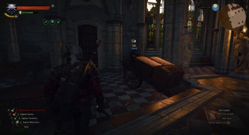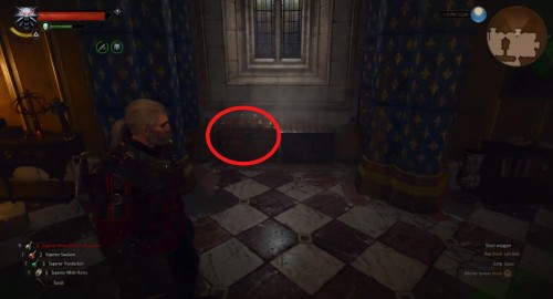 Если вы уже давно побывали в тронном зале Вызимы и поговорили с Эмгыром, то после захода в игру вам должно будет прийти письмо с указаниями Йеннифэр, в котором она подробно расскажет о том, где искать сундучок с подарком. В ином случае вам нужно будет для начала пройти сюжетную миссию «Сирень и крыжовник» и попасть на аудиенцию к императору Нильфгаарда.