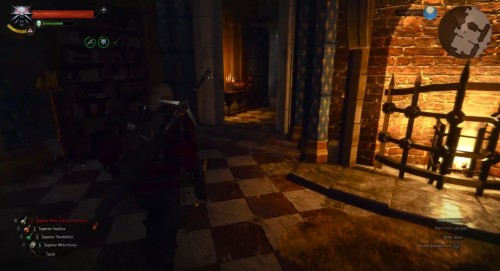 Оказавшись в замке Вызимы, поверните налево, выйдите через дверь и бегите прямо до самого конца. Затем сверните вправо и забегите в первую дверь слева. Далее пройдите во вторую комнату с правой стороны. Возле левой стены вы обнаружите большой сундук, в котором лежат стальной и серебряный мечи девятихвостой лисицы, а также полный комплект доспехов белого тигра Запада и еще одно письмо от Йеннифэр.