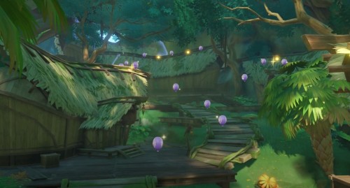 Поднимитесь наверх по лестнице, собирая по пути полевые шары, а затем взаимодействуйте с четырехлистным символом на крыше дома с левой стороны. Встаньте так, чтобы при взлете подобрать один шарик, висящий в воздухе. Находясь на кровле, соберите два шара.